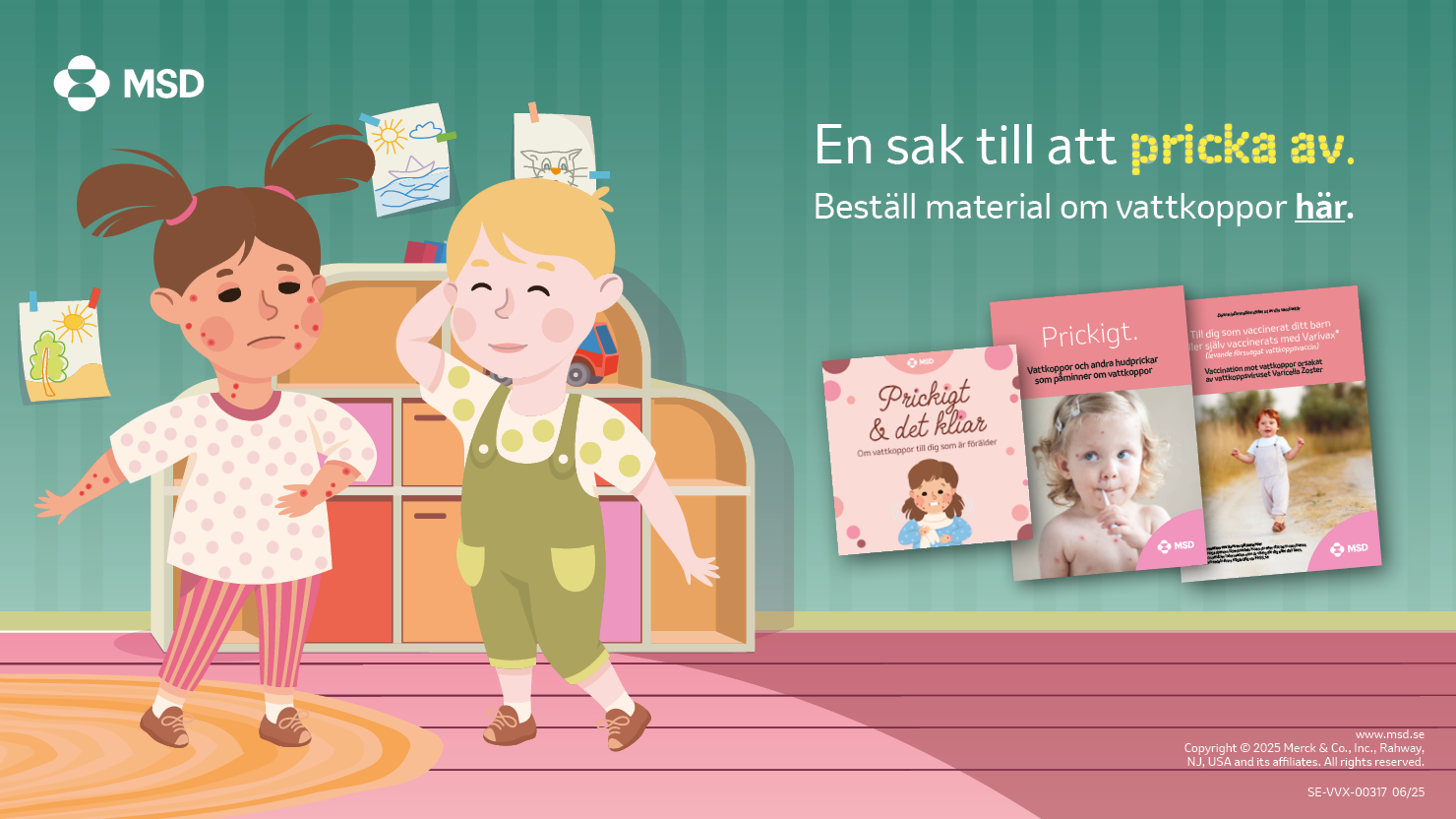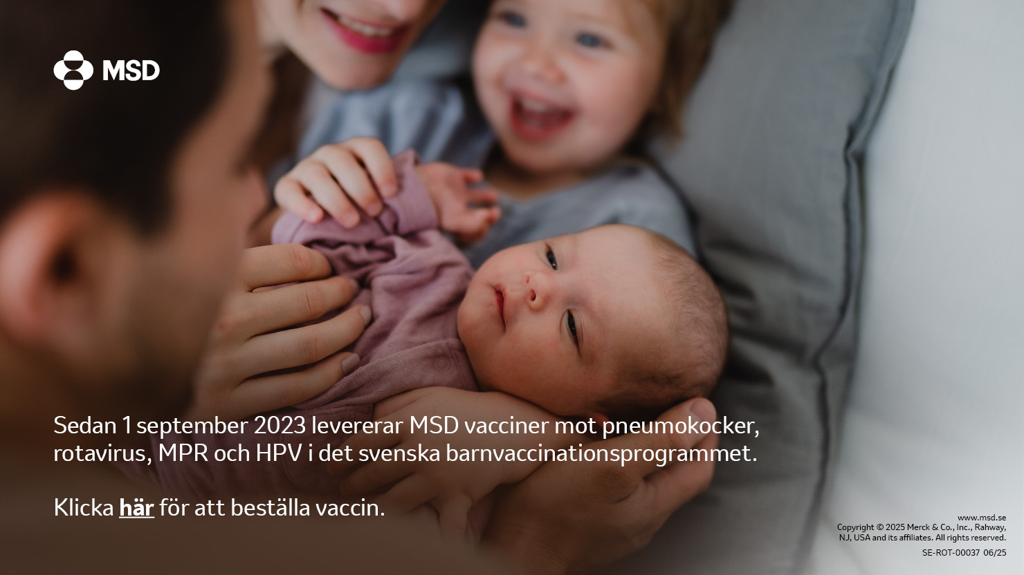MSD leder utvecklingen till en hälsosammare framtid med produkter som förbättrar människors och samhällens välbefinnande över hela världen. Vi är kända för vår innovationskraft, expertis, etik och engagemang att skydda såväl barns som vuxnas liv. Varje barn, kvinna och man förtjänar att få skydd mot sjukdomar som går att förebygga med vaccin.